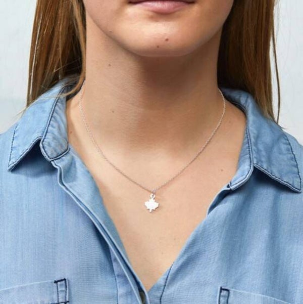 Show off your Canadian pride with this maple leaf charm necklace; Designed and made in Canada.