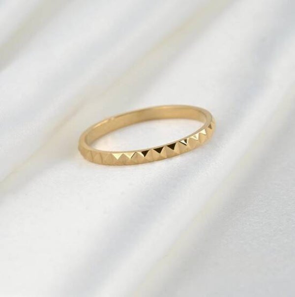Made in 18k gold plated stainless steel, this simple pyramid ring is a piece you will hold on to forever. Wear it stacked with other rings, or alone for a minimalistic look. Safe to wear in water.